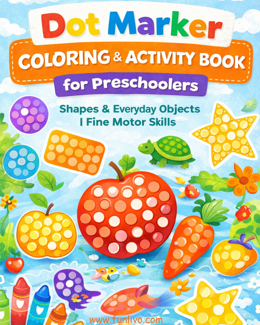 Unlike random coloring pages, this dot marker coloring & activity book for preschoolers is carefully structured to support early development. The dot patterns guide hand movement, while familiar objects help children connect learning to the real world.