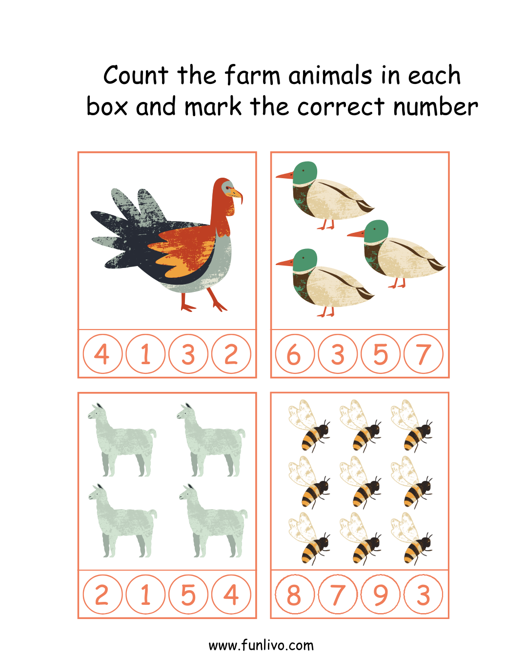 - Count the farm animals and mark the correct number