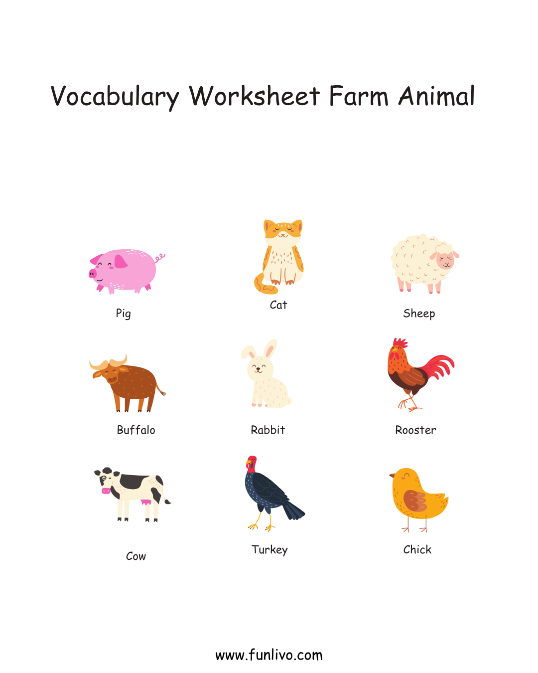 - Farm animal vocabulary worksheets