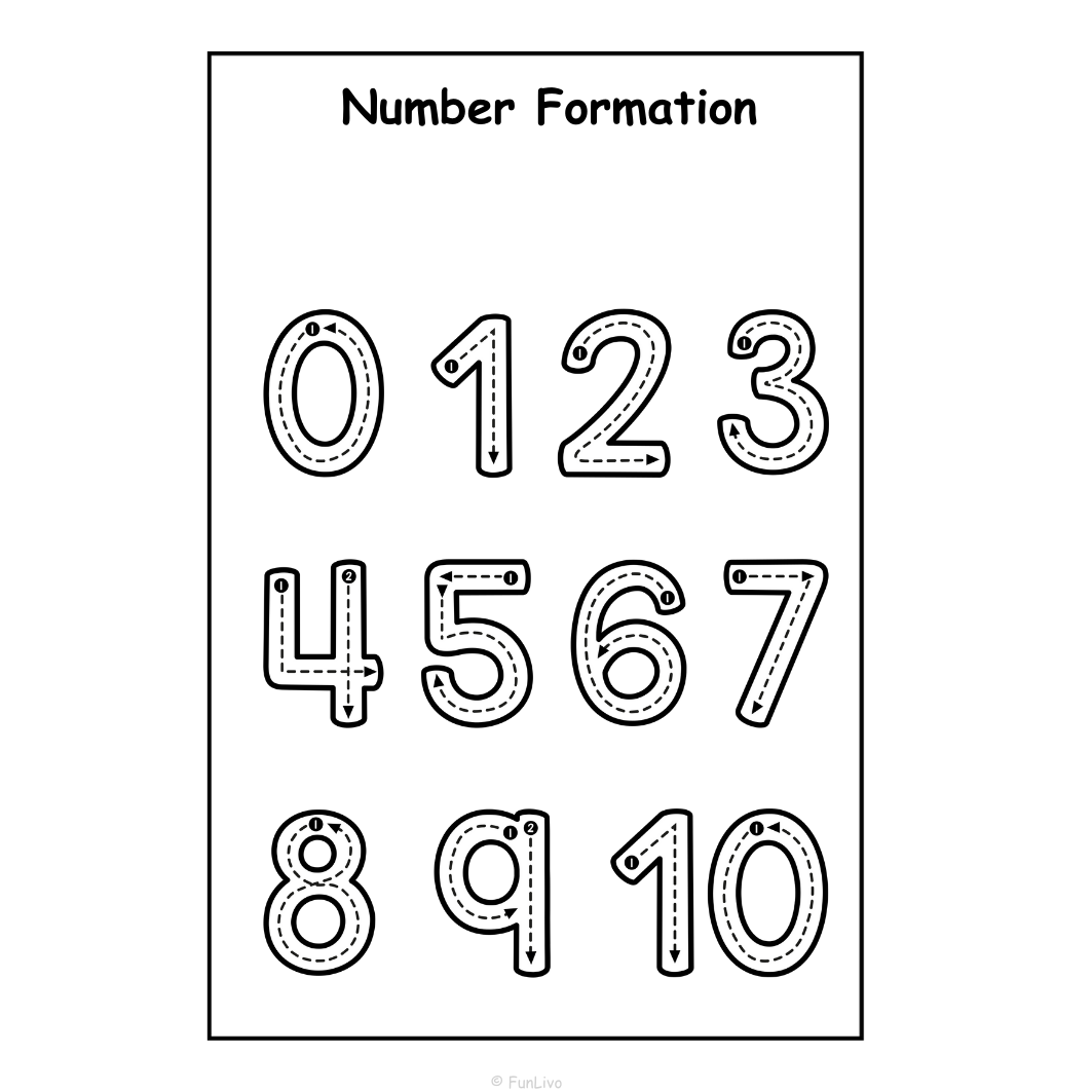 Children will develop number recognition, number tracing, counting skills, pencil control, fine motor skills, and early math foundations.