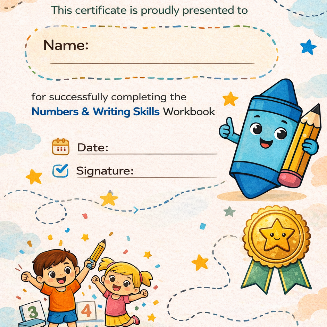 This printable number tracing workbook for preschoolers helps improve pencil control, number formation, fine motor skills, and hand-eye coordination through structured and playful practice. Kids learn to recognize numbers, trace confidently, and build a strong foundation in counting and shapes.