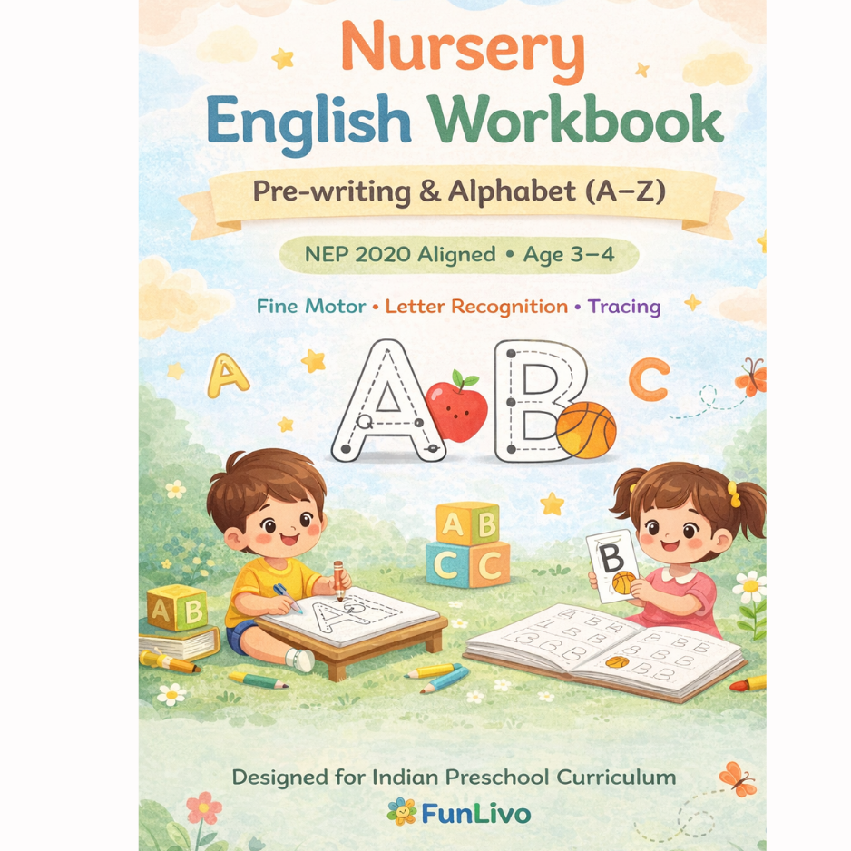 The Nursery Alphabet Tracing Workbook is specially designed for children aged 3–4 years to build early writing readiness through simple, age-appropriate activities. Aligned with India’s Foundational Learning approach, this workbook focuses on pre-writing skills, alphabet recognition, and correct letter formation—without overwhelming young learners.