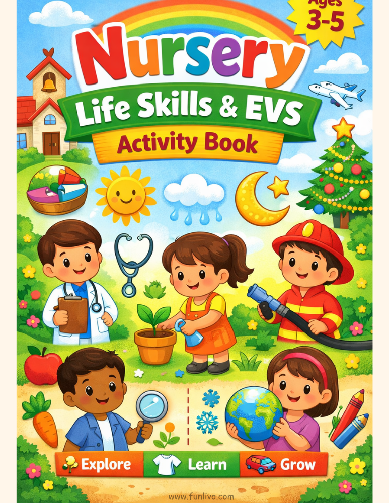 Nursery Life Skills: Nursery EVS Activity Book (Age 3–5) | Preschool Environmental Studies Workbook (40+ Worksheets PDF)