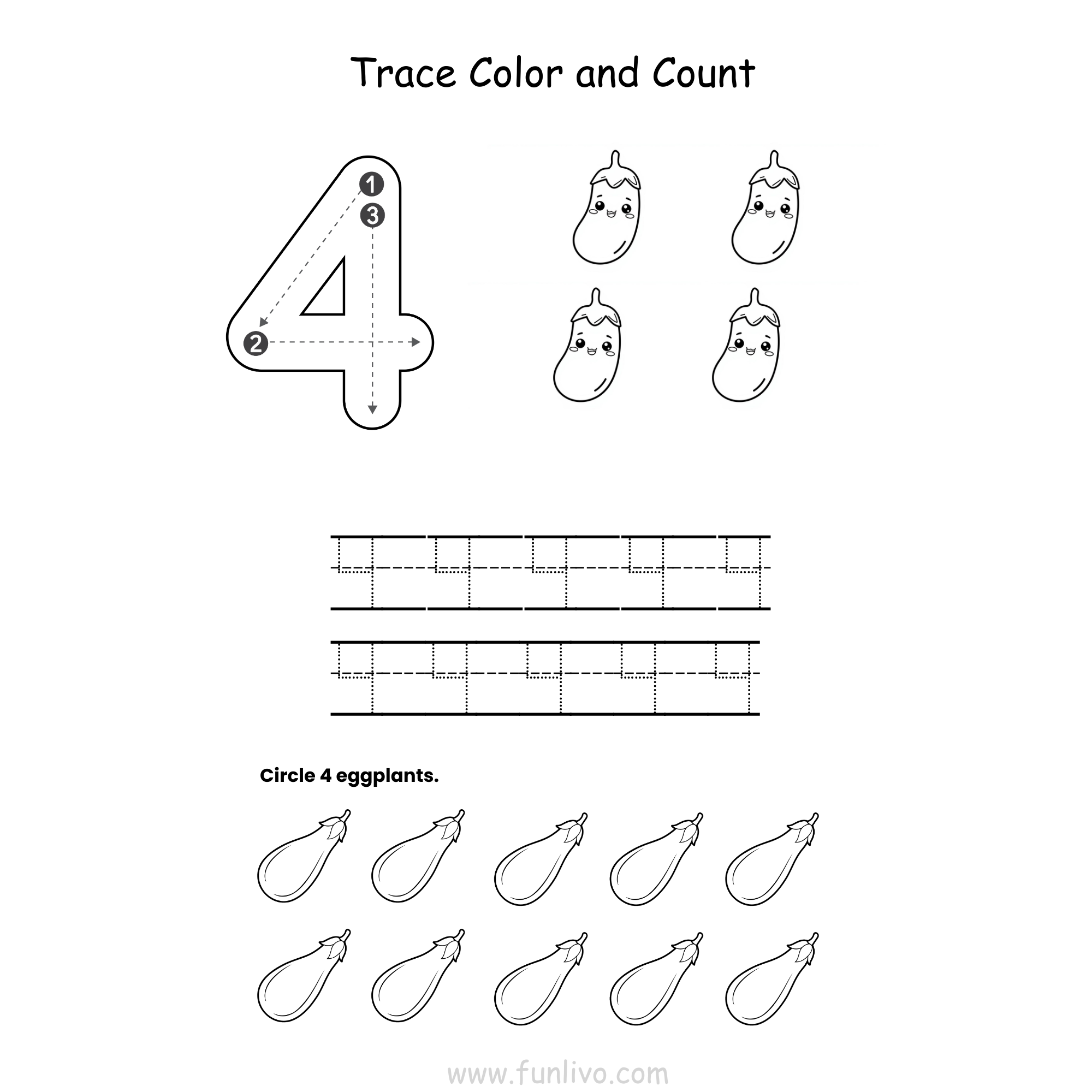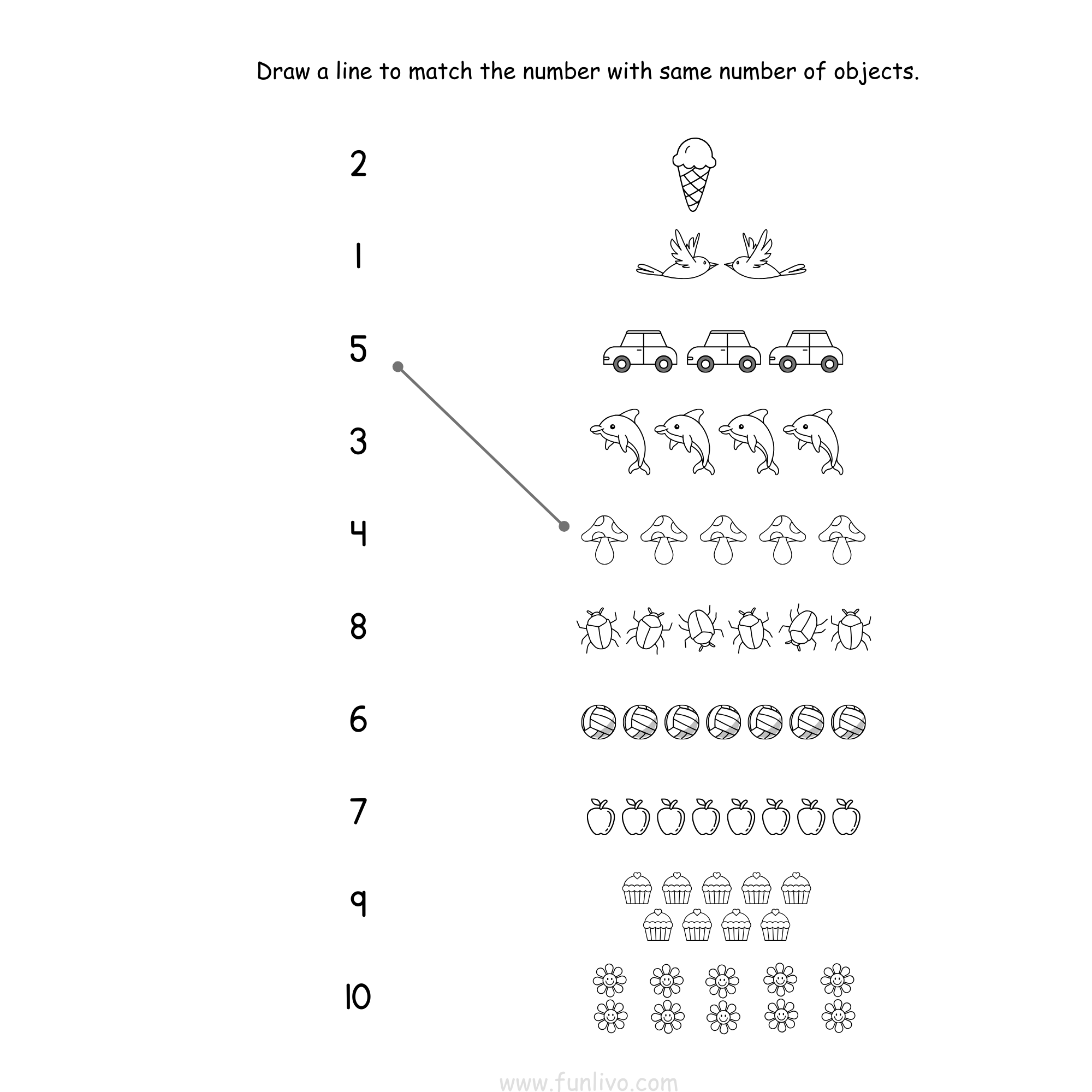 The content is aligned with common early learning expectations and focuses on foundational math concepts suitable for nursery-age children.