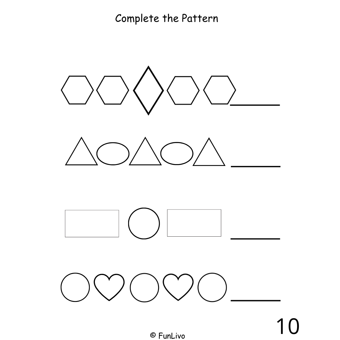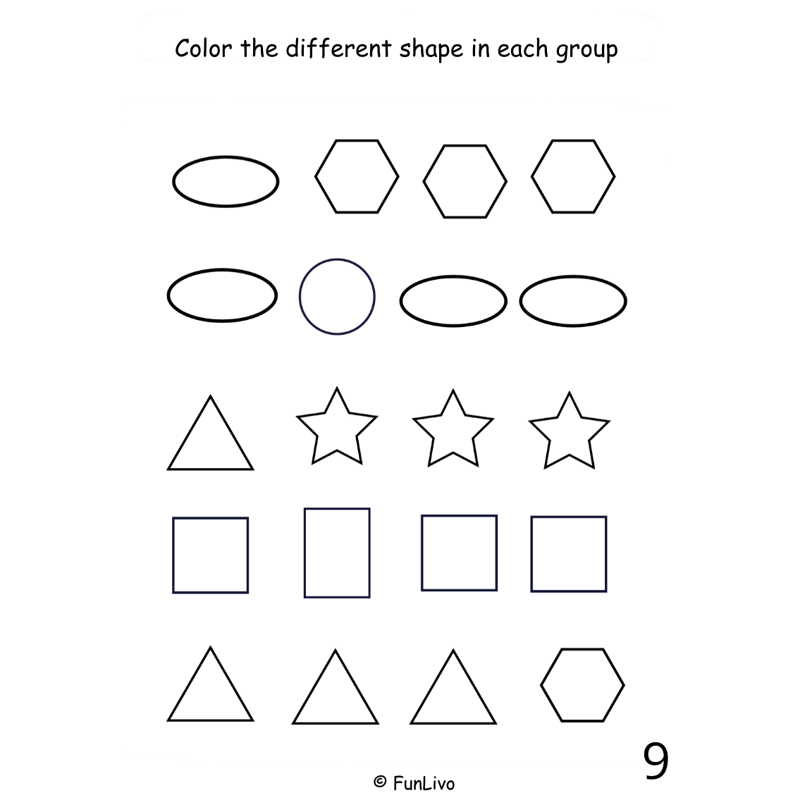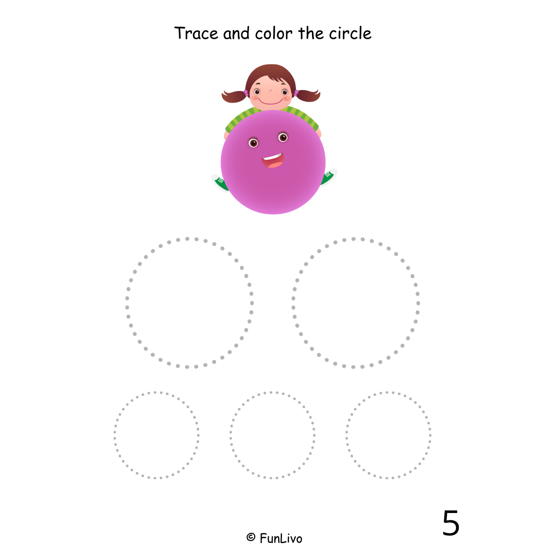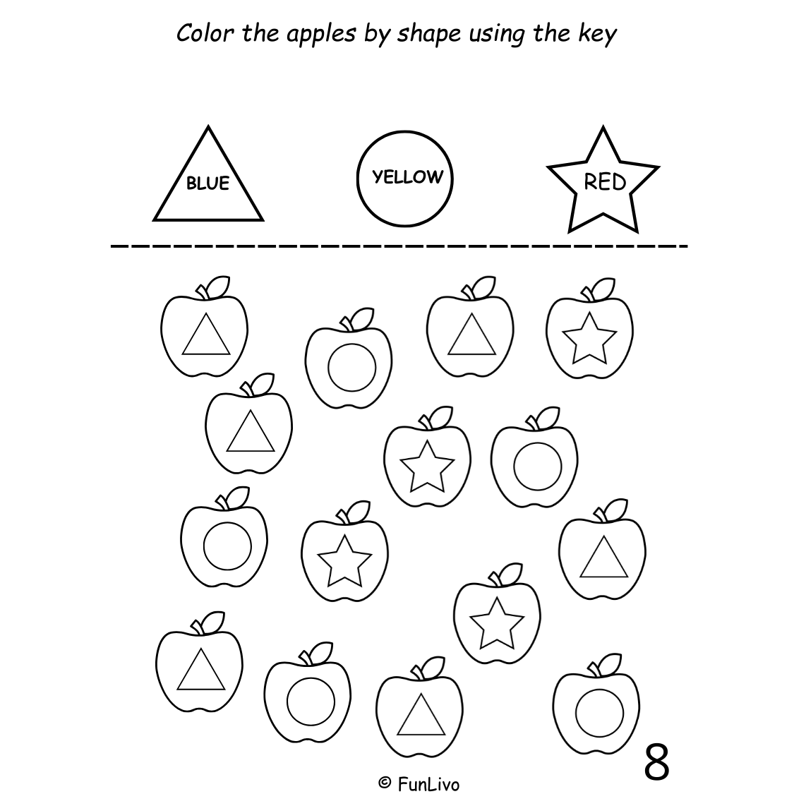 Your child will explore 10 basic shapes — circle, square, rectangle, triangle, star, oval, heart, pentagon, hexagon, and diamond. Each shape includes multiple activities such as trace & color, picture tracing, shape objects (house, robot, fish, rocket, and more), patterns, counting shapes, and dot marker fun. Playful cartoon characters keep kids excited and motivated on every page.