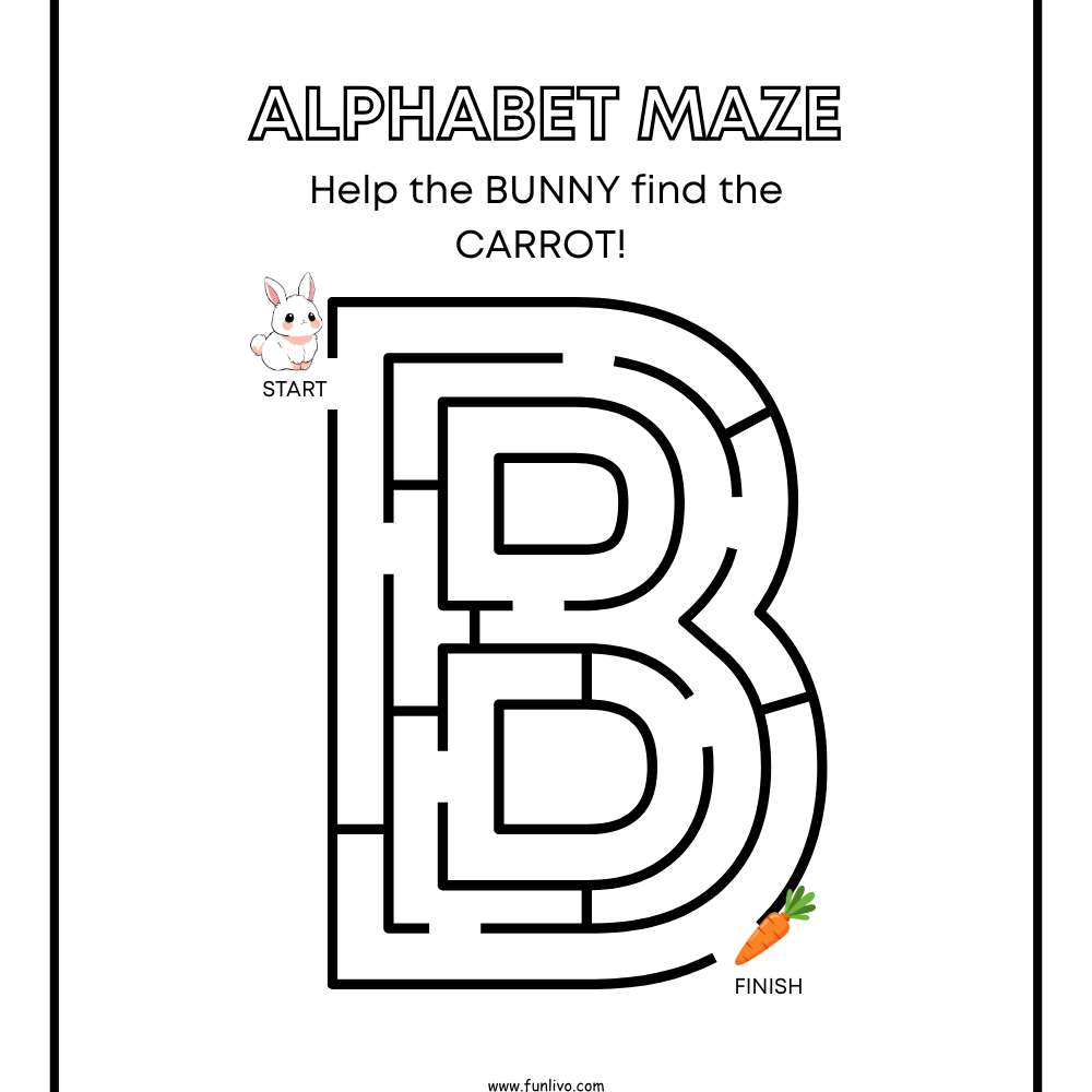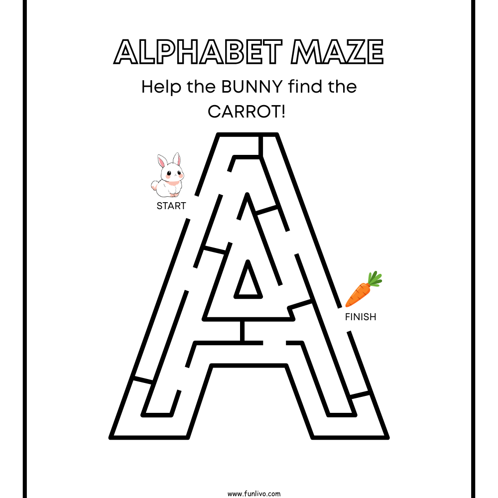 Each page features one uppercase letter maze where children help a cute bunny find its way to a carrot. As children follow the maze paths, they naturally become familiar with uppercase letter shapes, improve hand-eye coordination, and develop focus—all while having fun.